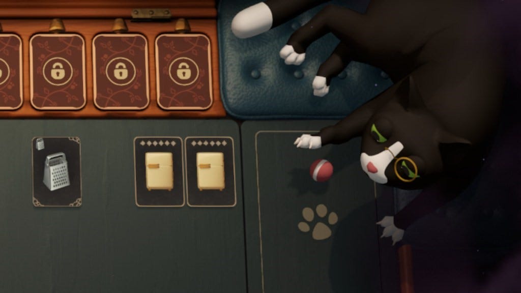 If I had to describe Abra-Cooking-Dabra it would be a cross between Overcooked and Solitaire, maybe? You are running a British restaurant that resembles a seedy gambling parlour for some reason, and there is a cat that just hangs out in the corner of the table. Now, since we have a ‘Wonderland’ sort of vibe here, the cat is presumably a nod to the Cheshire Cat.