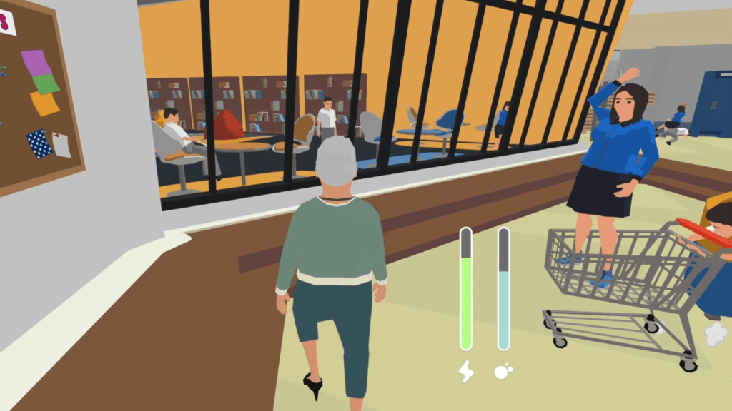 Navigating primarily stationary objects in your house was hard enough, but once you’re outside, there are a myriad of other things to navigate. A cat darts out of the bushes, people are running up and down the staircase, and someone else is tossing a ball nearby. What happened to respecting your elders? Get out of Grandma’s way, can’t you see she’s struggling? The number of times I managed to get through an area, only to forget to breathe right at the end, is embarrassing. My patience was running out faster than Grannie’s stamina and breathing gauges. At least there were more checkpoints once you got outside your home.