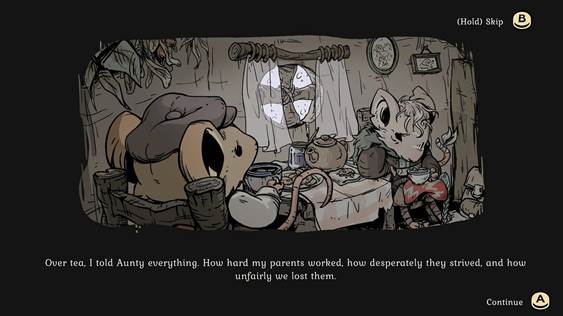 All of that being said, it is not without its moments of darkness. During the opening sequence of the game, you are faced with the story of how your parents died after moving your family to the city for a better life, sending you back to your woodland home from your childhood memories. You are hoping your Aunt Betulina will be waiting for you there.