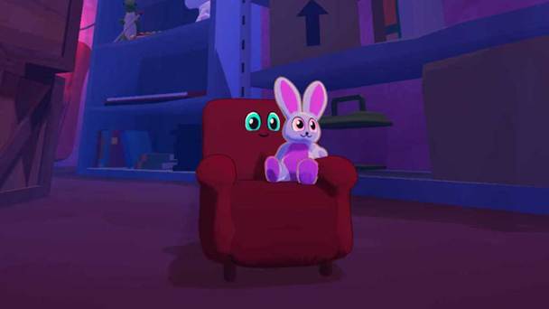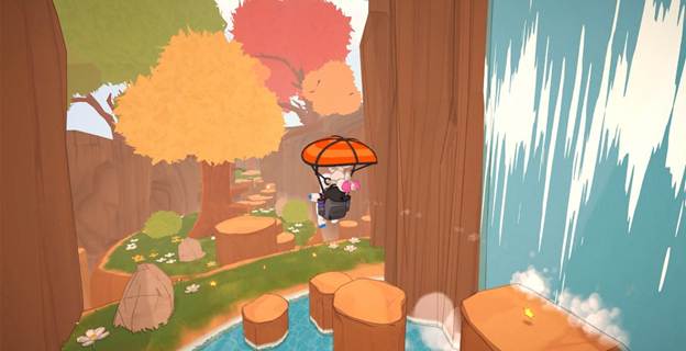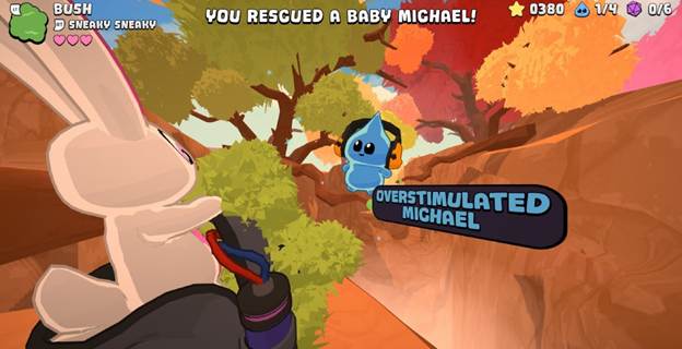 Teeto is a small blue…something that can absorb a wide variety of objects, turning them into new forms with new abilities. How can they do this? With a Vionite-powered backpack provided by their cute bunny sidekick, Nory. Together they will use these unique abilities to solve puzzles, discover secrets, defeat enemies and find adorable little “Michaels” hidden around the levels. Michael was Nory’s first experiment. He split into 2, then 4, then 8, spread all through the levels. Each Michael has its own personality, and each made me smile as I found them while exploring.