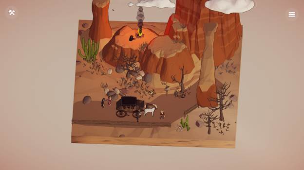 What sets Mini Worlds Diorama apart for me is the variety of settings, each with its own items to choose from. Sci-Fi, City and Mediterranean are all options, and I was pleasantly surprised to find a Western scene. Now I could create my own Red Dead Redemption inspired world of my own. Each theme gives you a starting point, but you are always free to mix and match ideas to create something of your very own.